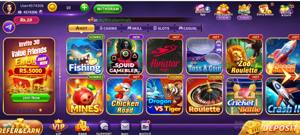Some of the most popular and easy-to-bet games on the platform include Dragon Tiger, Roulette, and 7 Up 7 Down.